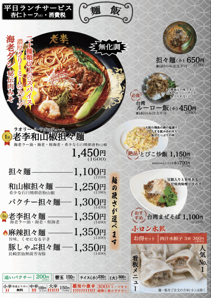 台湾水餃 LAO LEE かもめ市場店(横丁) メニュー